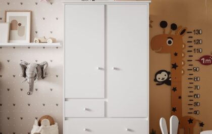 6% sparen – LOOKWAY Kinderkleiderschrank BABUSHKA Zweitüriger Kleiderschrank mit Schubladen Weiß – nur 859,00€