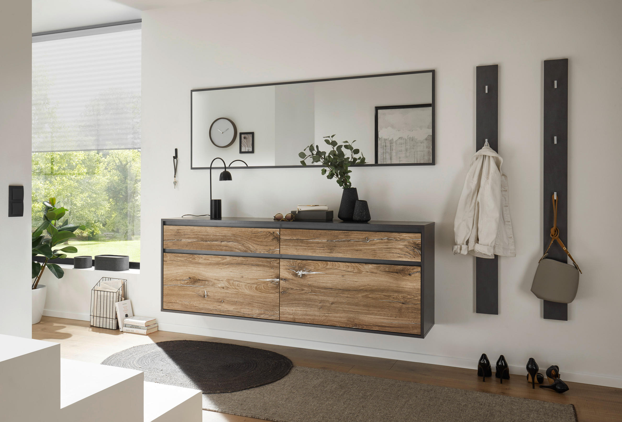Weitere Informationen zum Schnäppchen HÄNGESCHUHSCHRANK Eichefarben, Dunkelgrau von VOLEO